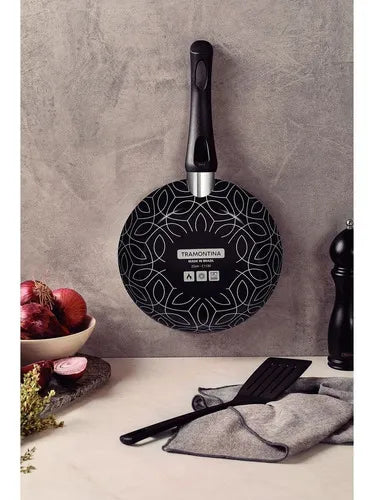 Sartén Tramontina Paris de Aluminio con Revestimiento Interior Antiadherente Starflon Max y Exterior de Silicona Negra con Espátula de 24 cm y 1,2 litros